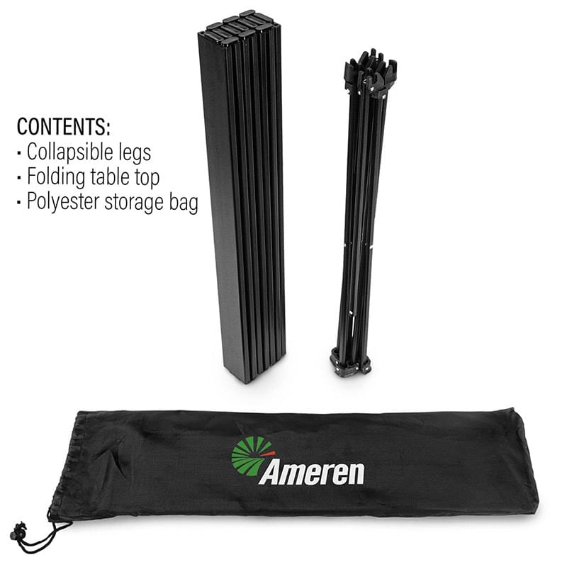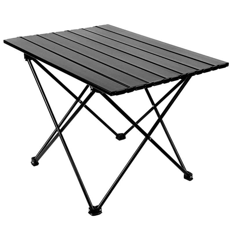 Great for picnics, camping, tailgating and backyard parties, this lightweight metal folding table folds neatly into an included black bag for convenient carrying.